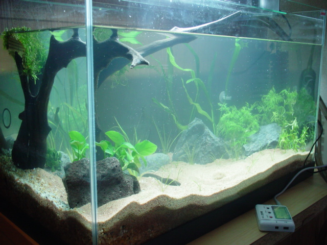 前回は砂利でしたが、今回はこの為だけに水槽に砂を敷き詰めました。